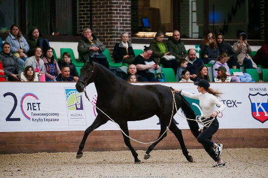 В самом многочисленном ринге, среди десяти других изумительных представителей древнейшей породы, титул чемпиона достался рожденному в Ставропольском конном заводе № 170 вороному Ханбасу от Караоглана и Халлыгозель (Парачева А.).